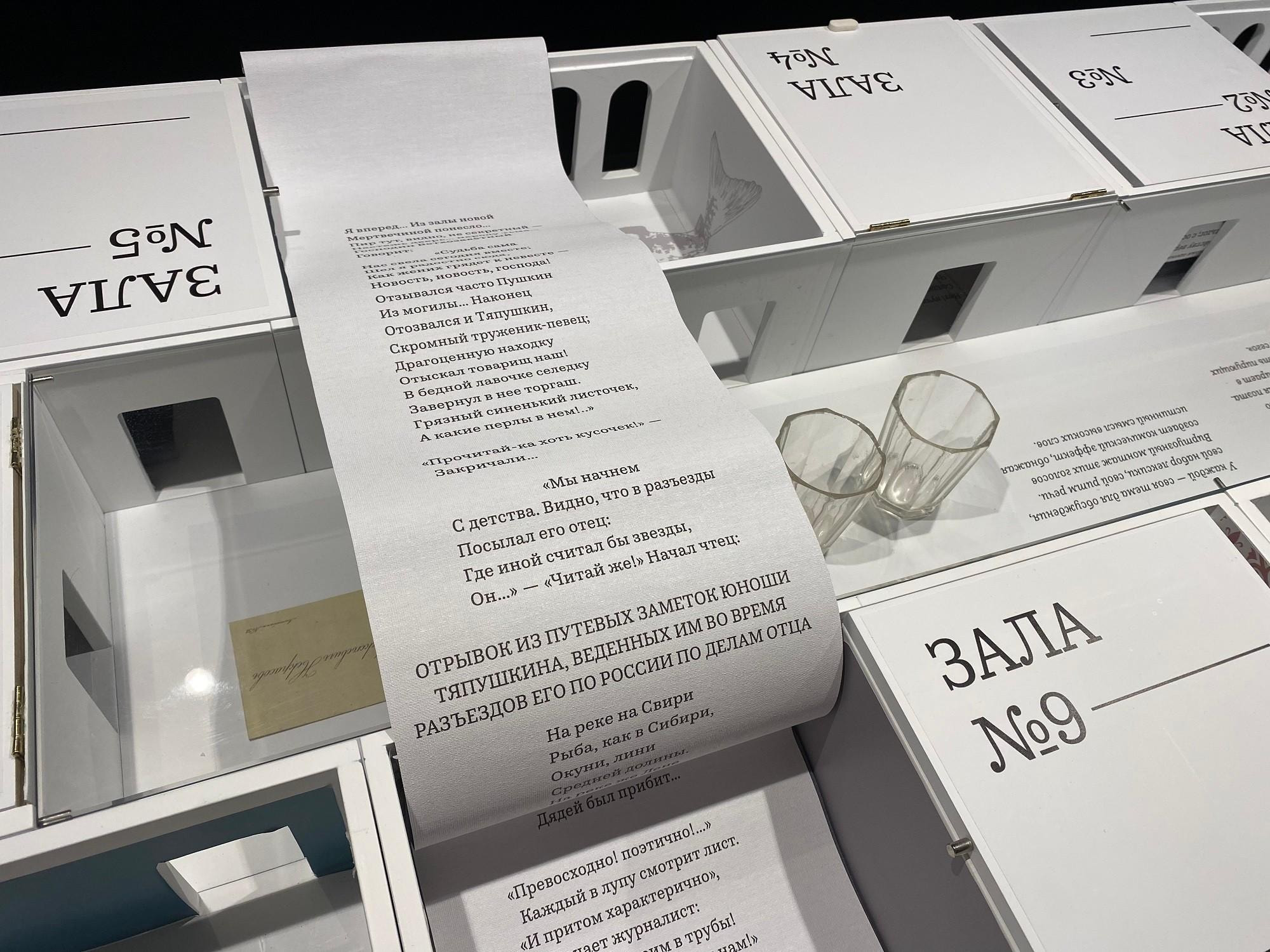 Экскурсия проходит по инновационной литературной выставке «Ход Некрасова. Как устроены карабихские произведения», главным экспонатом которой выступает поэтический текст. Каждому произведению посвящена инсталляция, раскрывающая историю создания, идею и образы, средства художественной выразительности, особенности стихосложения и лексическую уникальность.