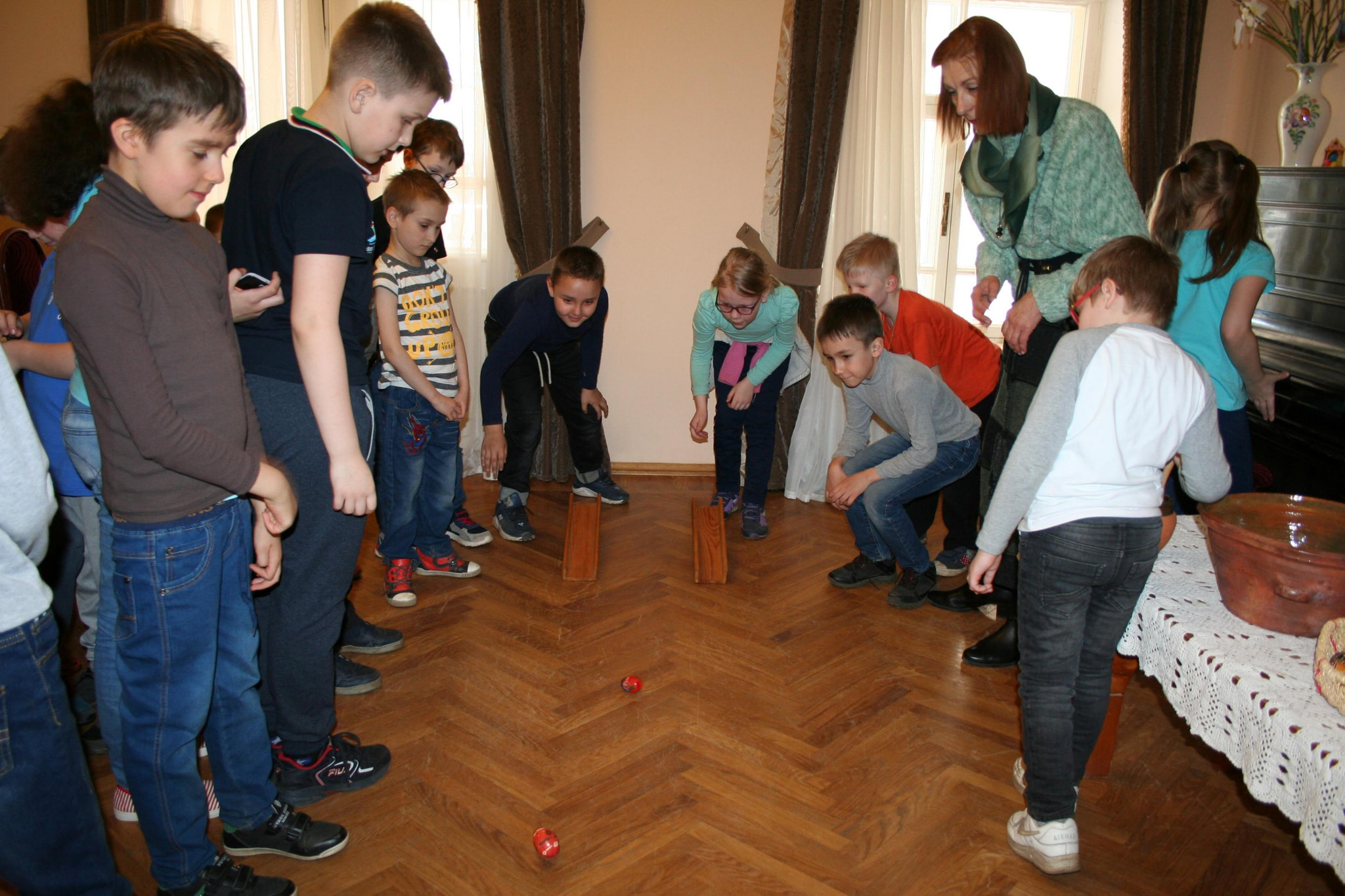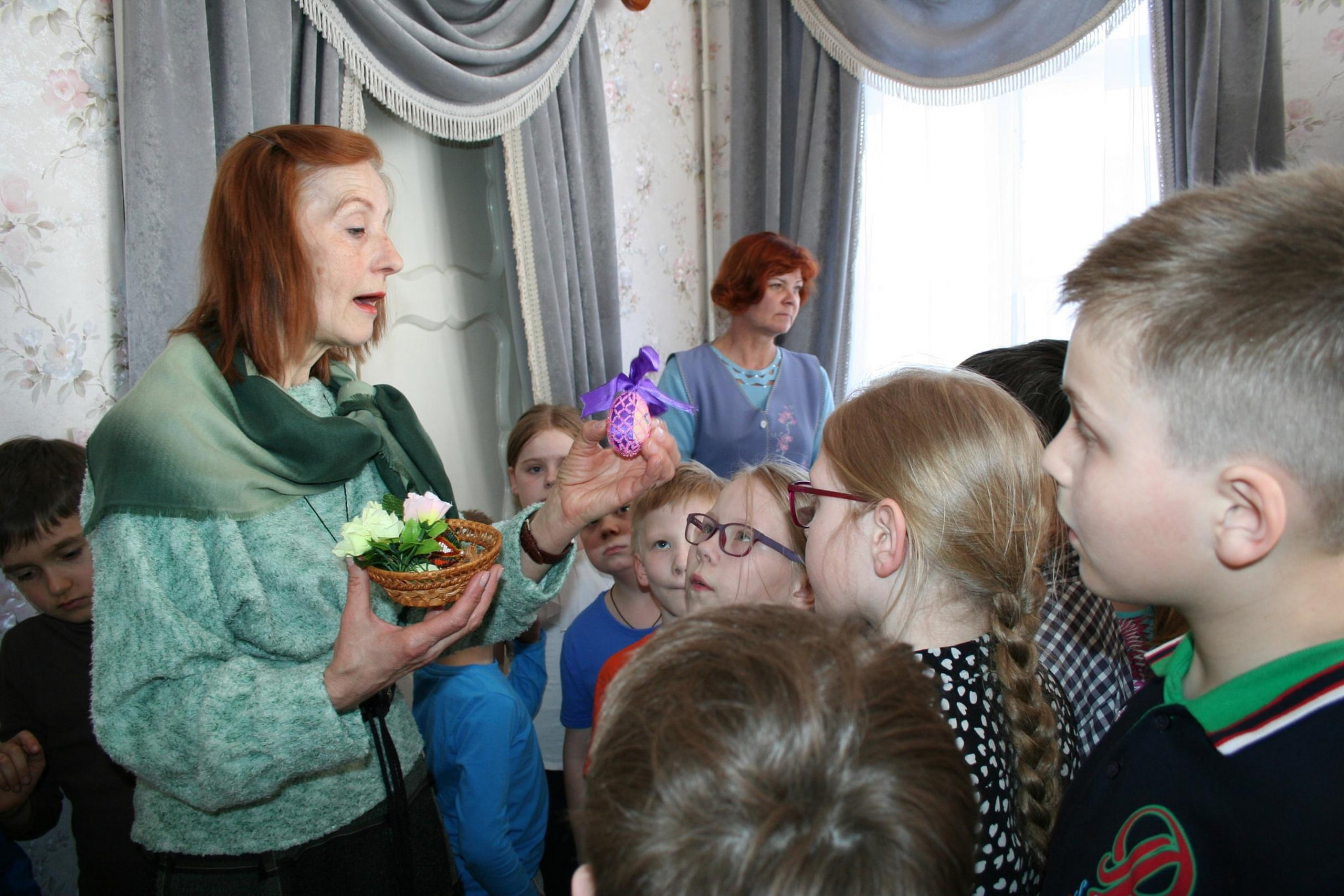 Программа начинается с путешествия по старинному барскому дому и знакомства с семейными реликвиями Некрасовых. Затем юные гости узнают, какие блюда готовили к Пасхе, как накрывали стол, что делали во время пасхальной трапезы. Особый интерес вызывают игры с крашенками - деревянными пасхальными яйцами. Завершит программу мастер-класс по изготовлению пасхального сувенира и усадебное чаепитие.