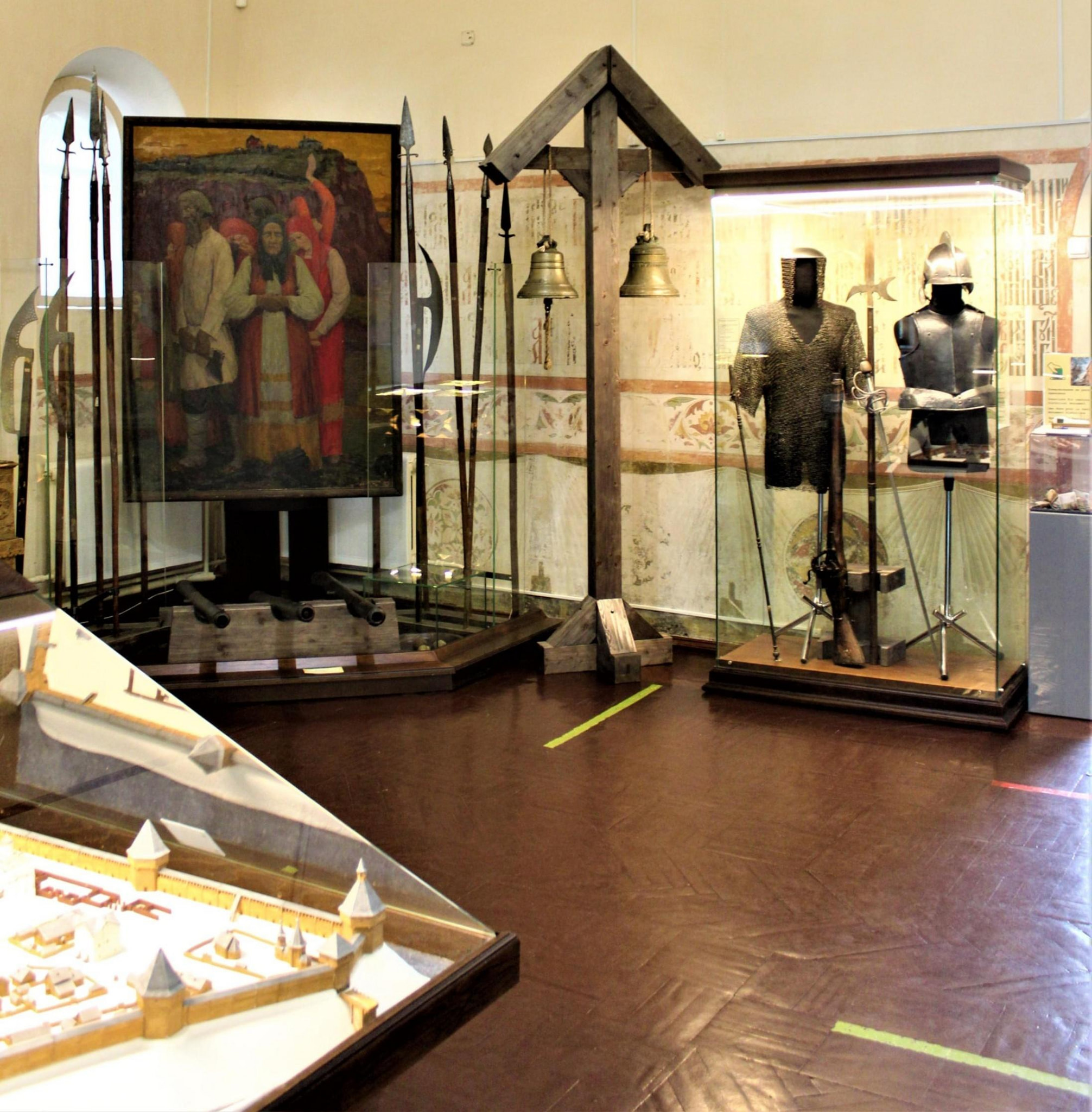 Экспонаты выставки, развернутой на верхнем этаже Палаты дворца угличских удельных князей (XV в.), наглядно повествуют об истории города от основания до Смуты.