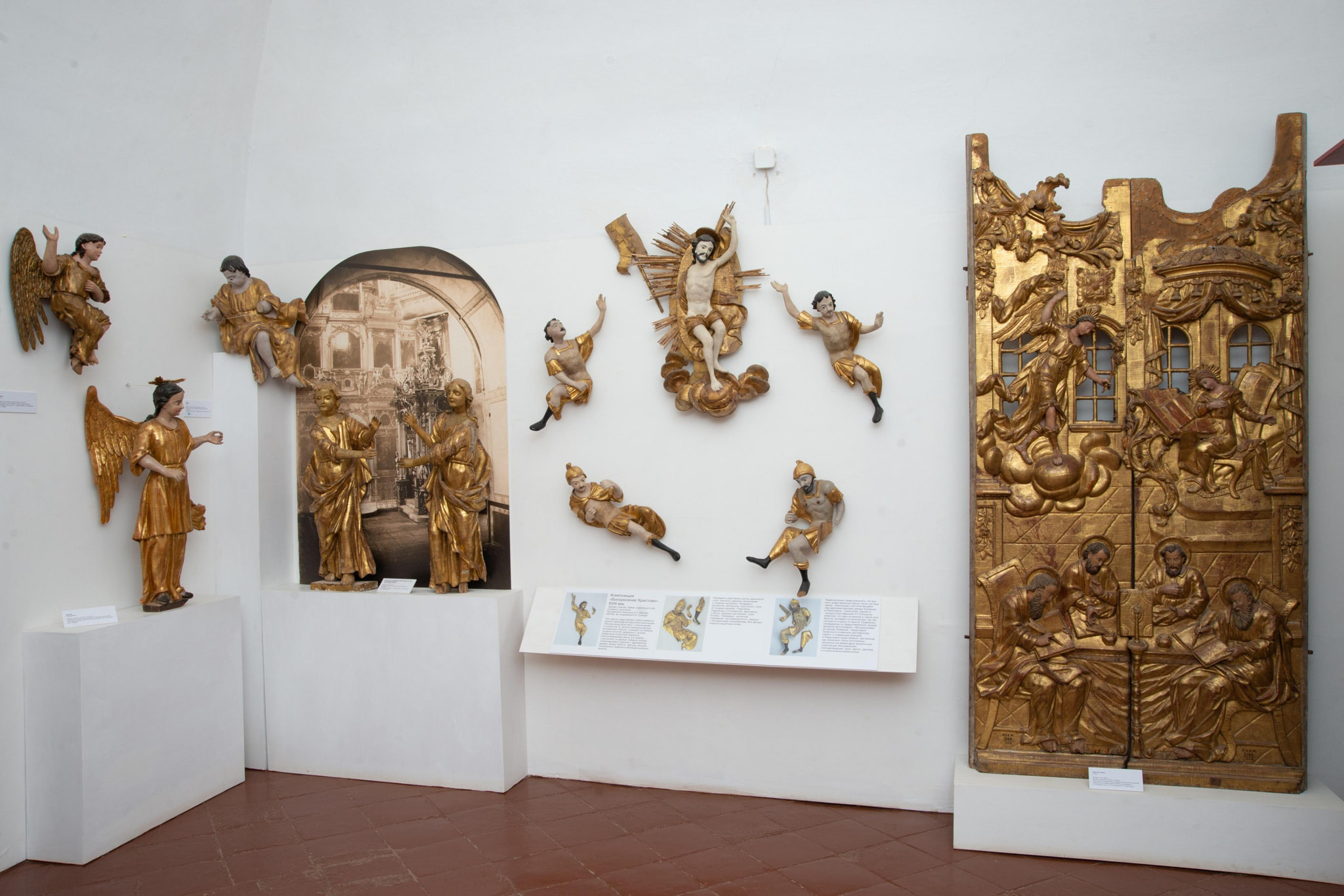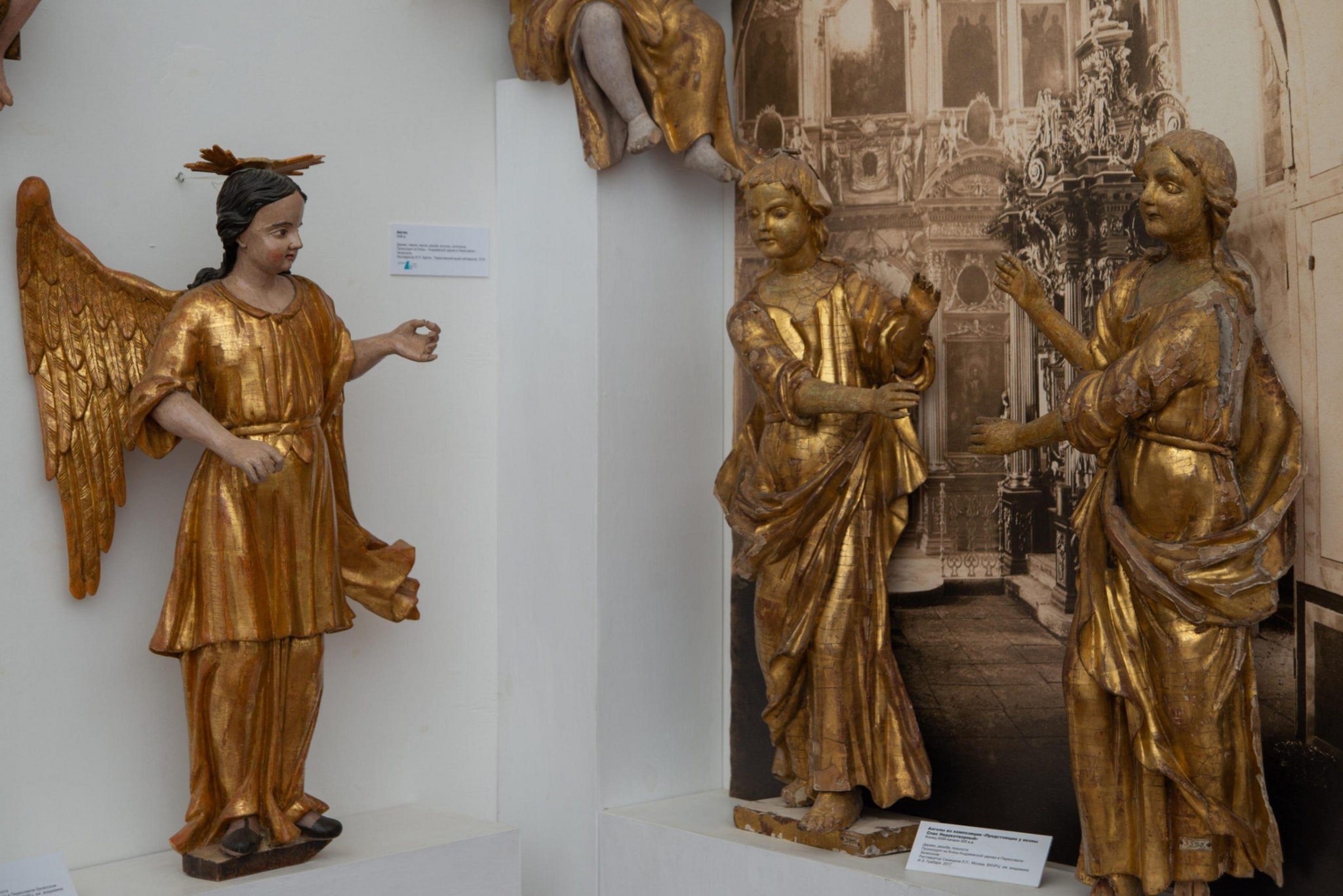 В экспозиции представлены как законченные скульптурные композиции, так и фрагменты несохранившихся иконостасов XVII–XIX веков из храмов Переславля и Переславского района.