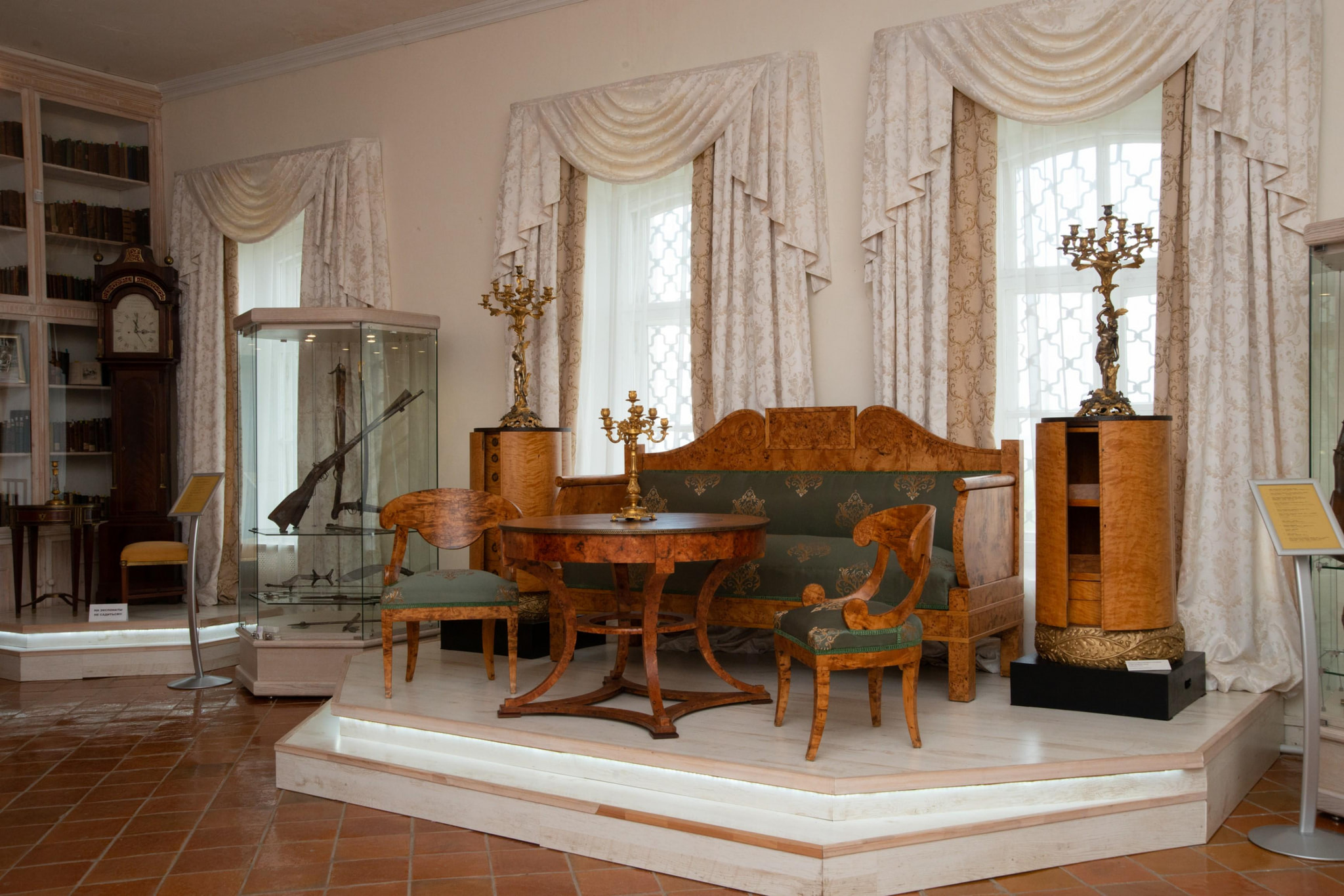 В экспозиции – художественные ценности и бытовые вещи из разрушенных дворянских имений Переславского уезда, часть того, что удалось спасти М. И. Смирнову и В. Е. Елховскому от разграбления и уничтожения в 1920-е годы. Фамильные портреты, мебель, фарфор, часы, книги в красивых кожаных переплетах, картины в тяжелых рамах, семейные реликвии связывают посетителя с культурой, историей, миром русской усадьбы.