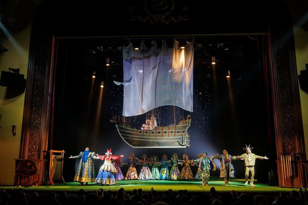 «Летучий корабль» – спектакль на основе замечательного мюзикла композитора Максима Дунаевского и поэта Юрия Энтина. В постановке будет показан мир, наполненный чудесами и волшебством, красотой и юмором. Здесь знакомые с детства герои: капризная царская дочка Забава, влюбленный в нее трубочист, бабки-ежки с разухабистыми частушками, жадный купец Полкан и водяной. В постановке прозвучат как хорошо знакомые зрителям песни из одноименного мультфильма, так и новые, написанные специально для этого мюзикла.