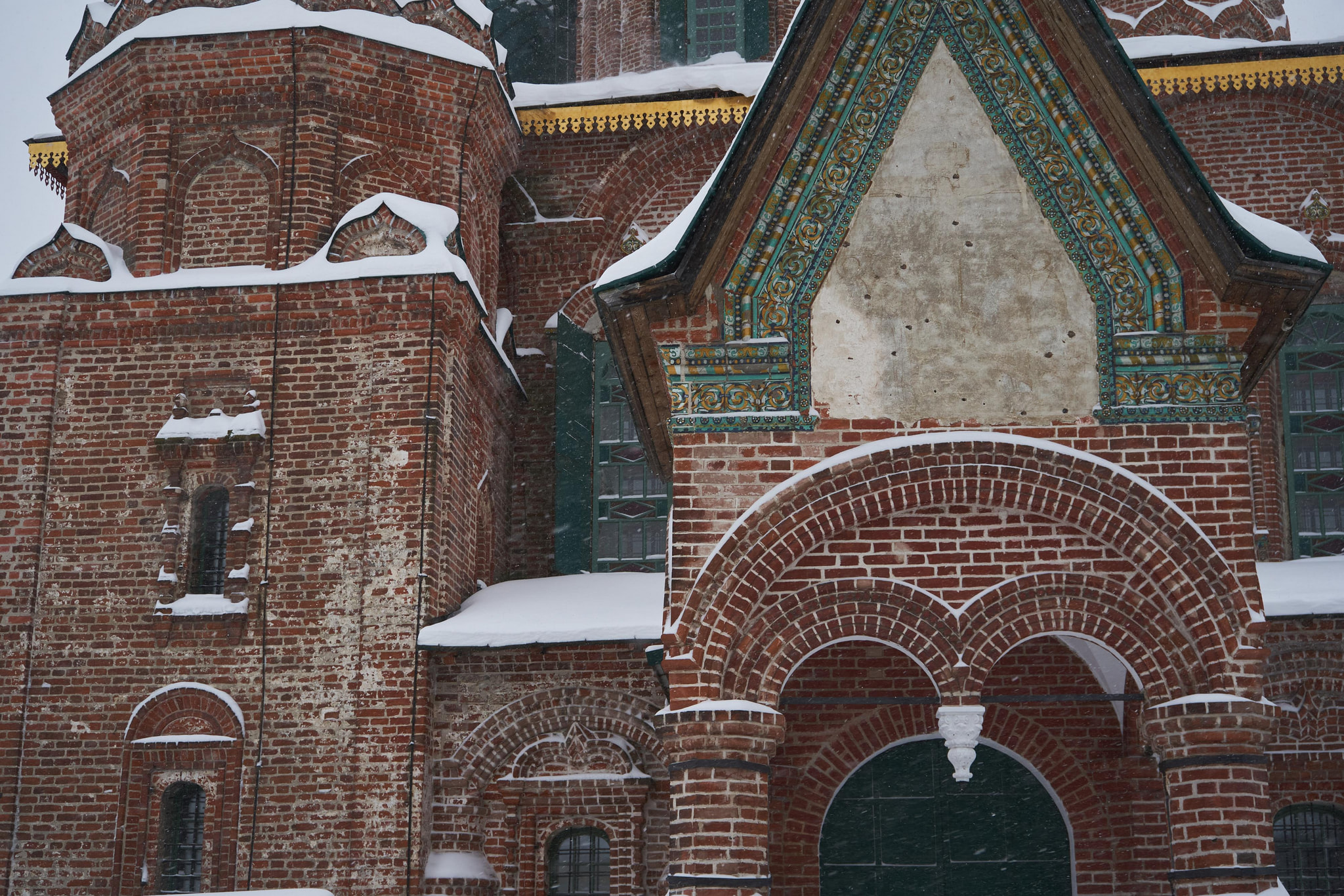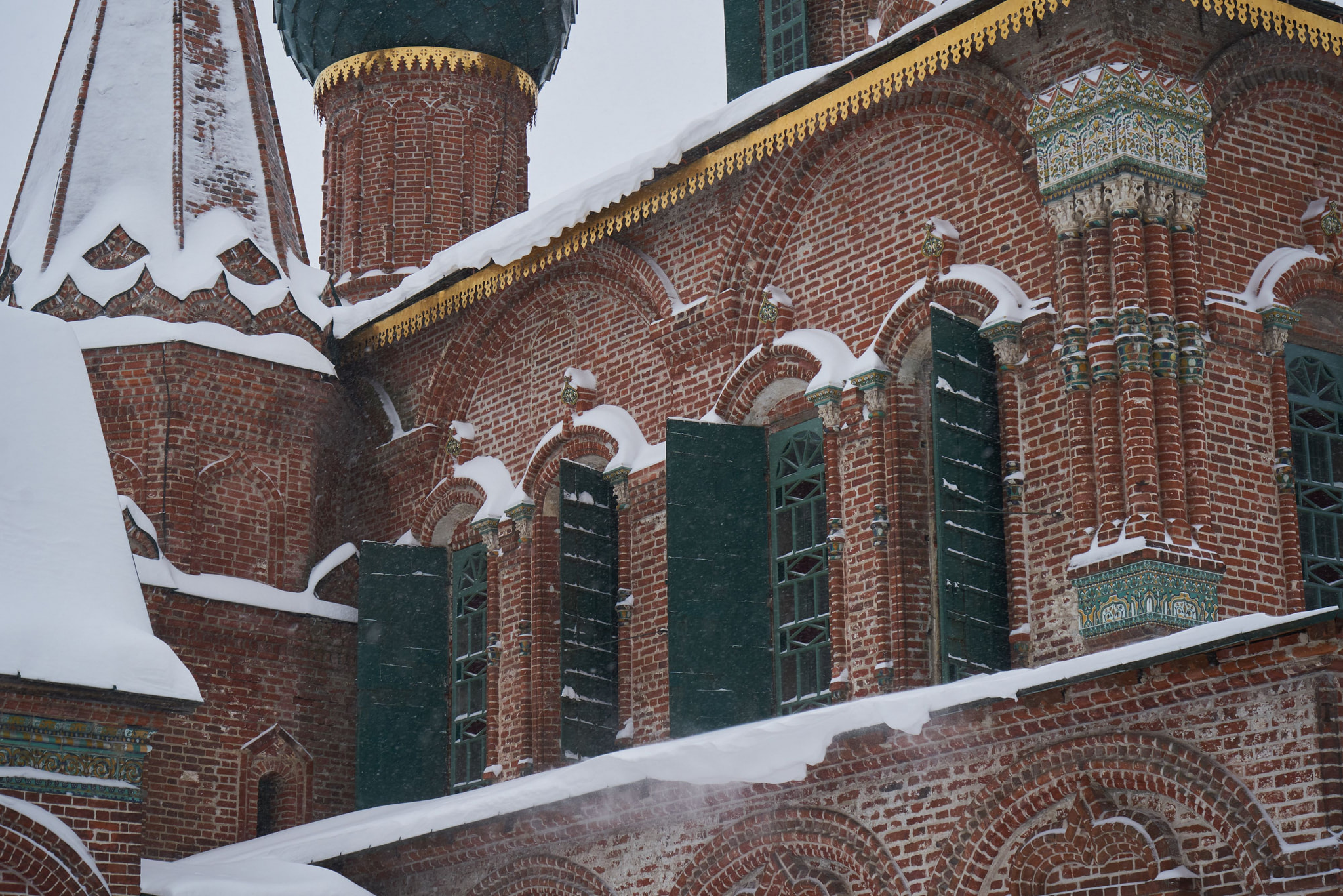 A little over a quarter of a century has passed since the construction, and a new generation of Yaroslavl architects has embarked on a radical redesign of the church. To make the temple better lit, high window openings were cut through its main volume and decorated with ornate architraves. At the corners of the building, the builders made elegant bundles of half-columns with colored tiled inserts. The Podzacomar coating was replaced with a more practical flat four-pitched roof. And to further emphasize the elegant lines of the temple, decorative porches were added to it, also decorated with ornaments of colored tiles and white stone carved weights on the entrance arches. This renovation gave the church an elegant and festive look, making it one of the most beautiful churches not only in the city, but also in Russia.