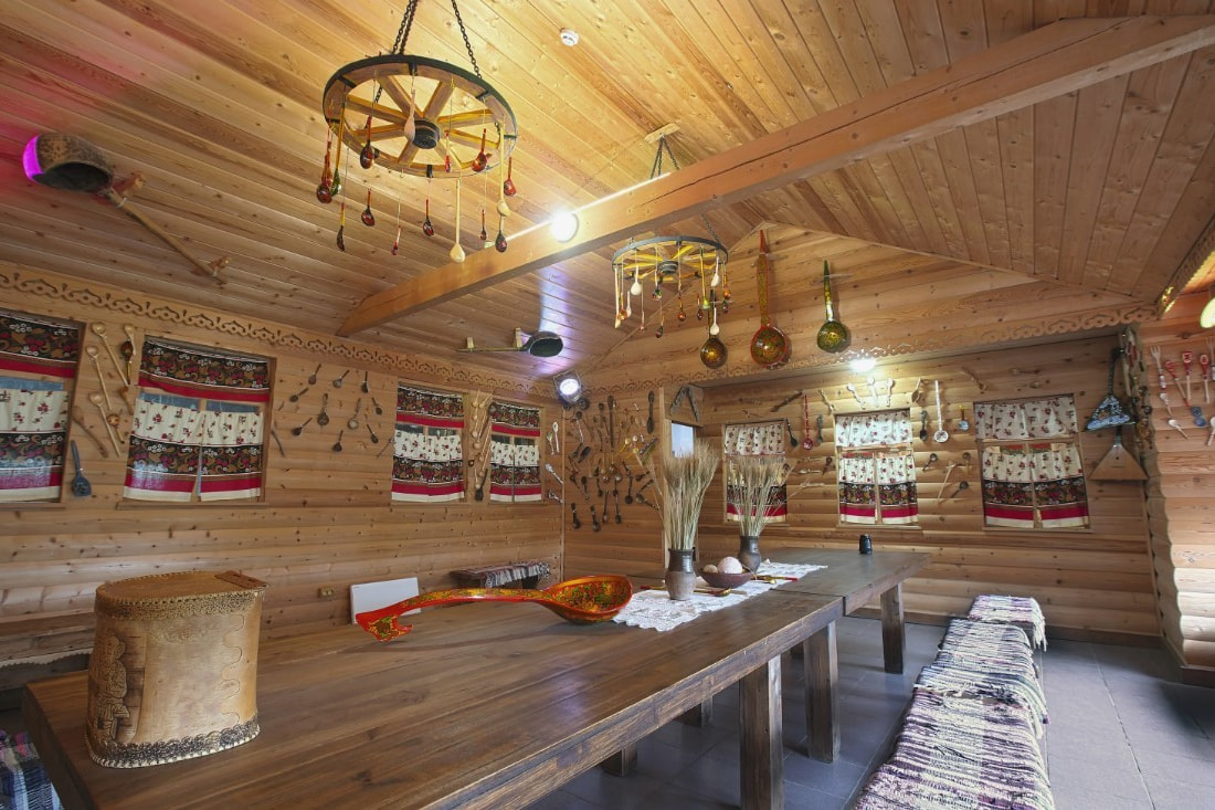 The exhibition allows you to immerse yourself in the world of Russian folk traditions and the spiritual atmosphere of a peasant hut. Arriving here, you will visit a peasant lozhkare master to learn the famous Russian craft — "beating the bucket".