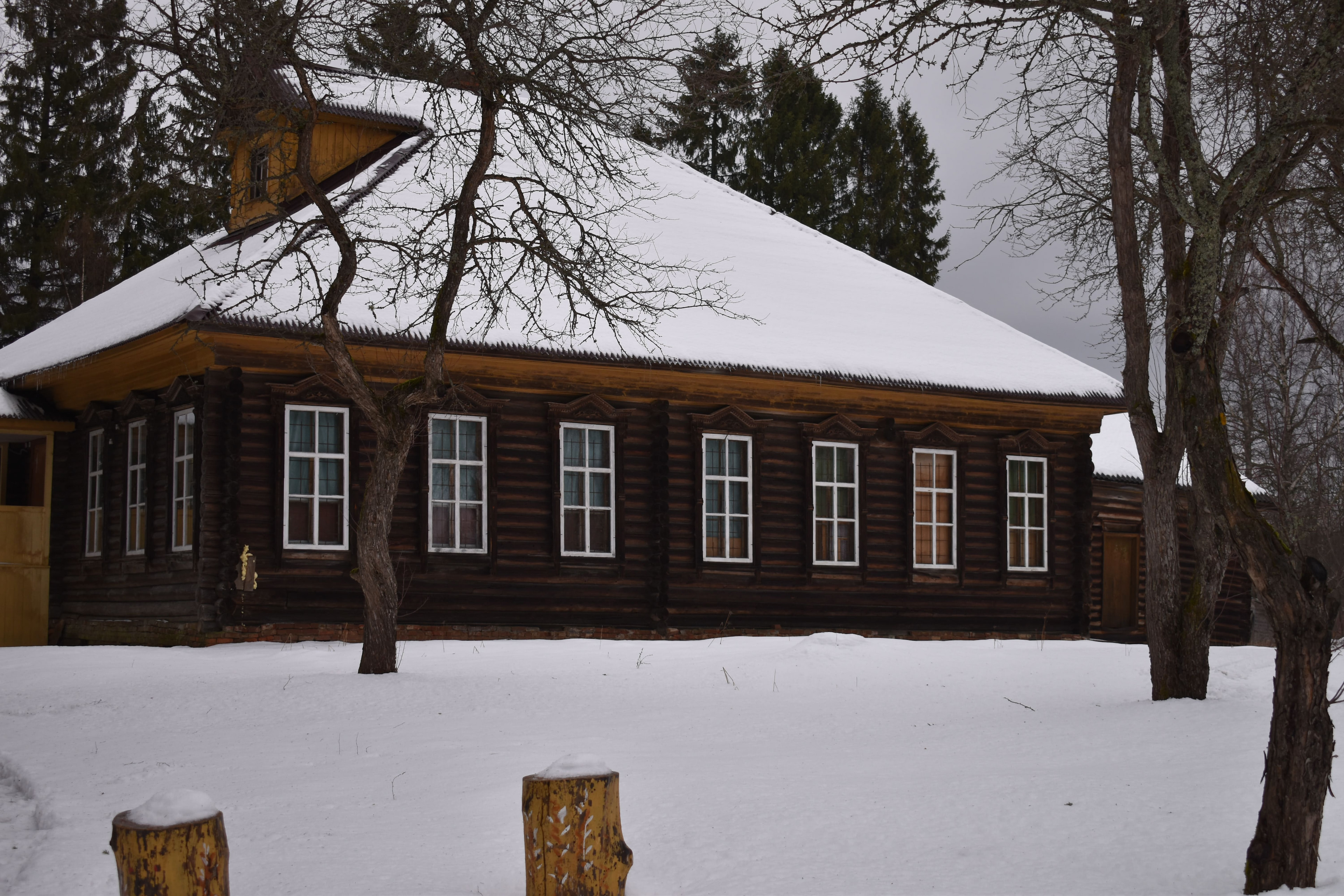 According to Dmitry Belsky's seasoning books of letters and measures, the village of Pravdino was mentioned as early as 1596-1597. According to archival documents, in 1820, there were 199 houses in the nearby eight villages that make up the parish of the temple and 1,198 people lived in them. In the middle of a large clearing, surrounded by a century-old mighty spruce forest, stands a wooden hut with a four-pitched roof, built in 1910 according to the design of the provincial architect Nikolai Lermontov. For about 100 years, there was a rural zemstvo school in this hut.