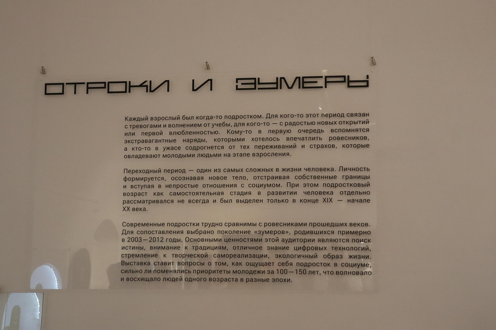 На выставке представлены уникальные предметы из собрания музея-заповедника «Кижи», дополненных еще 40 экспонатами из коллекции Ярославского музея-заповедника. Выставка строит диалог между разновозрастными поколениями, при помощи экспонатов отвечая на следующие вопросы: Что волновало подростка в XIX веке и что восхищает его сейчас? Сильно ли изменились жизненные приоритеты молодежи за 150 лет? Как происходило взросление в большой крестьянской семье тогда и чем оно отличается сегодня?