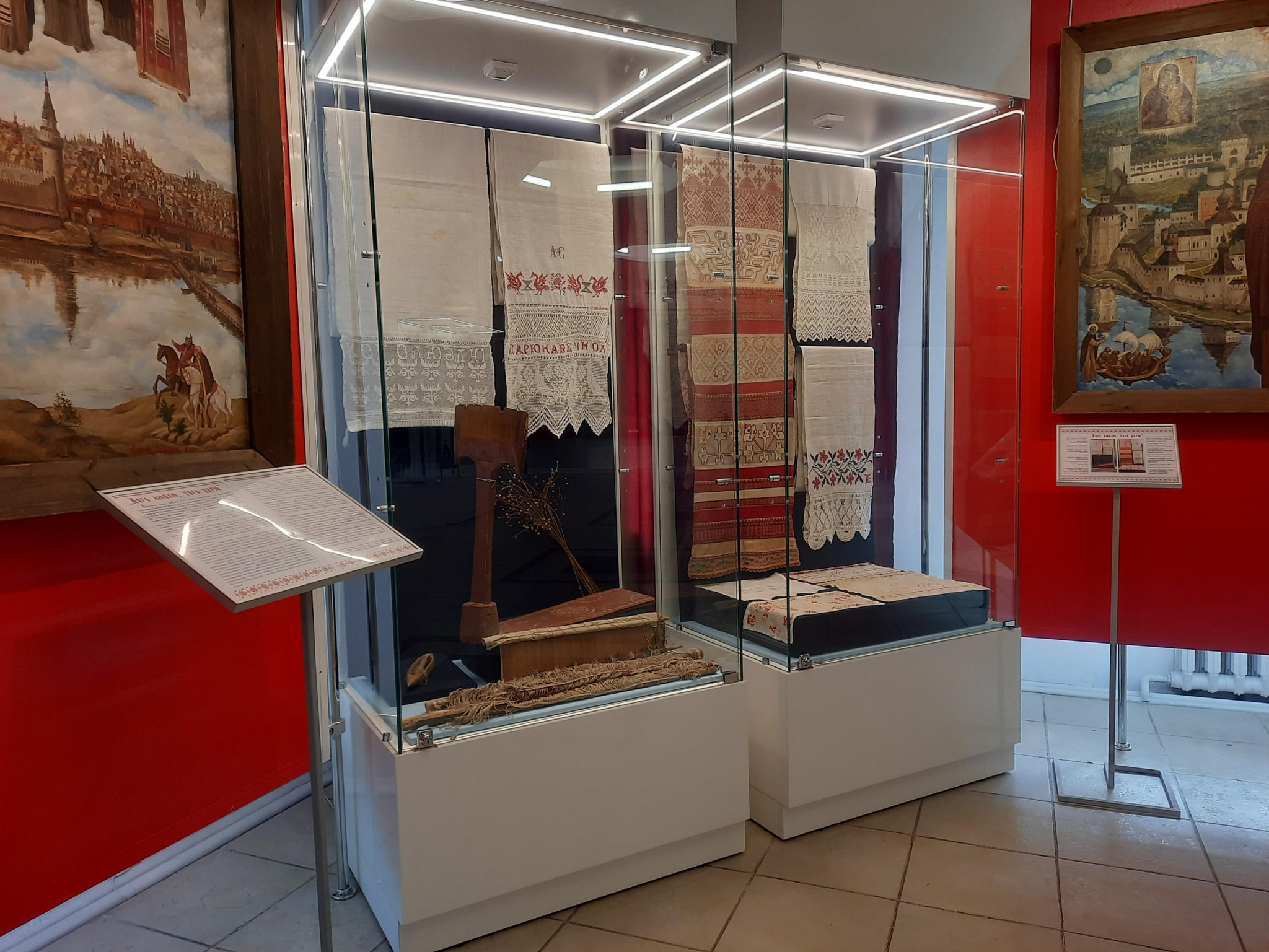 После Покрова (14 октября по нов.ст.), когда все работы в поле были завершены, женщины принимались за рукоделие, в том числе вышивку полотенец-рушников – именно они стали главными героями выставки.