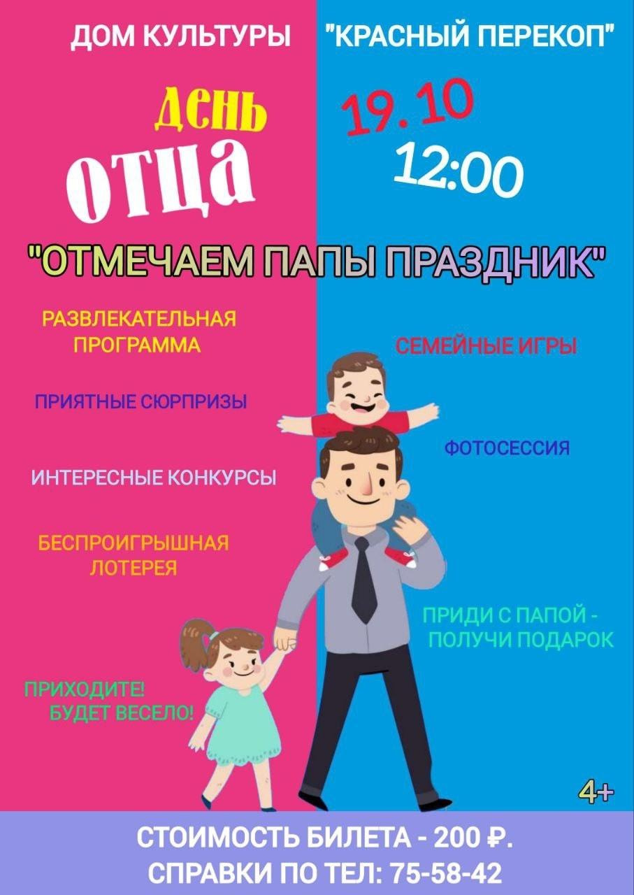 Берите с собой хорошее настроение и готовьтесь, что будет весело, громко и очень-очень по-семейному. А каждый кто захочет сделать профессиональную семейную фотографию, сможет сфотографироваться всей семьей после праздника и получить фотографию в подарок (фотография не входит в стоимость билета). Приди с папой - получи подарок! Не упустите шанс провести этот особенный день в кругу близких и любимых людей!