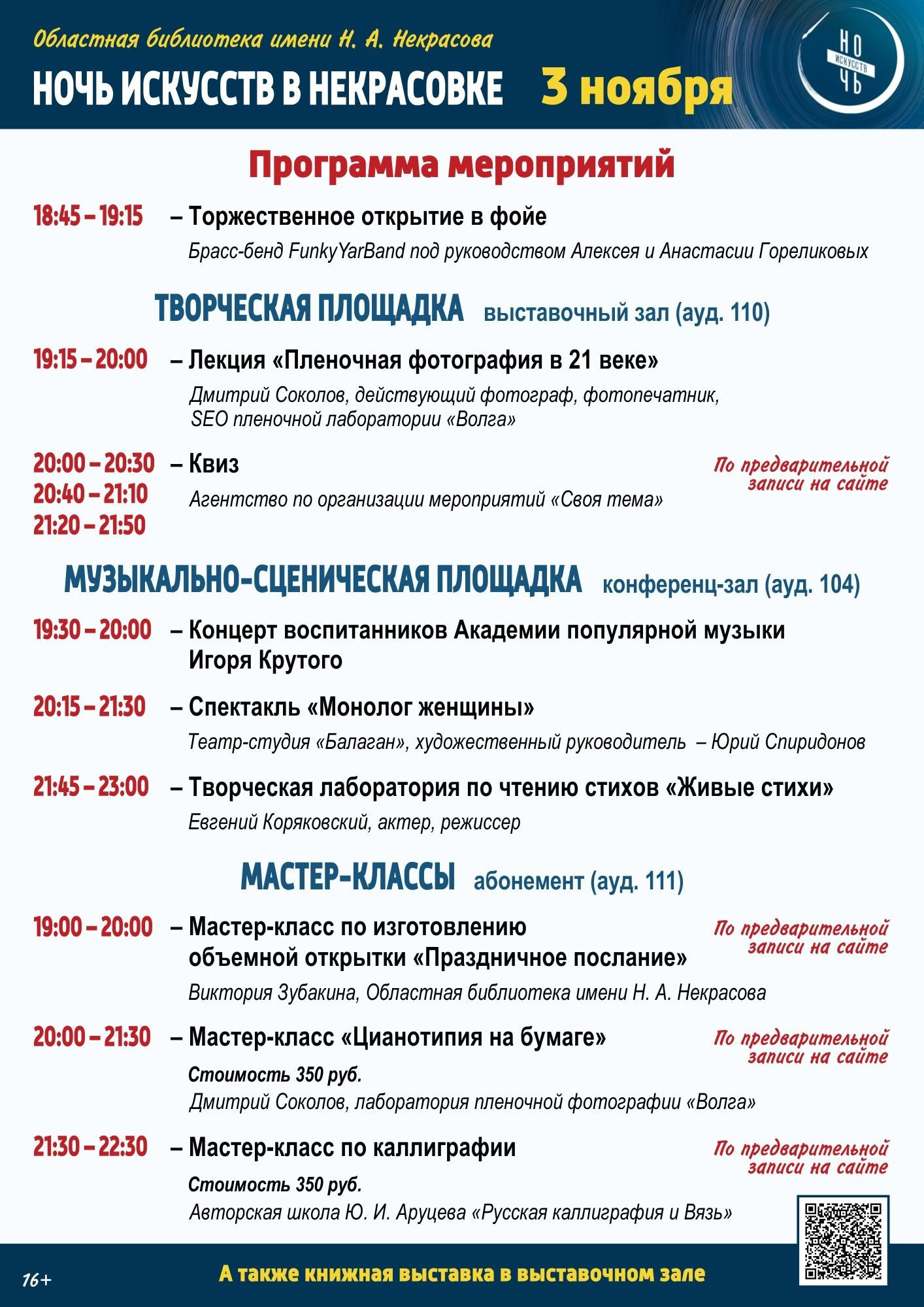 3 ноября Ярославская областная библиотека имени Н. А. Некрасова примет участие во Всероссийской акции «Ночь искусств».
