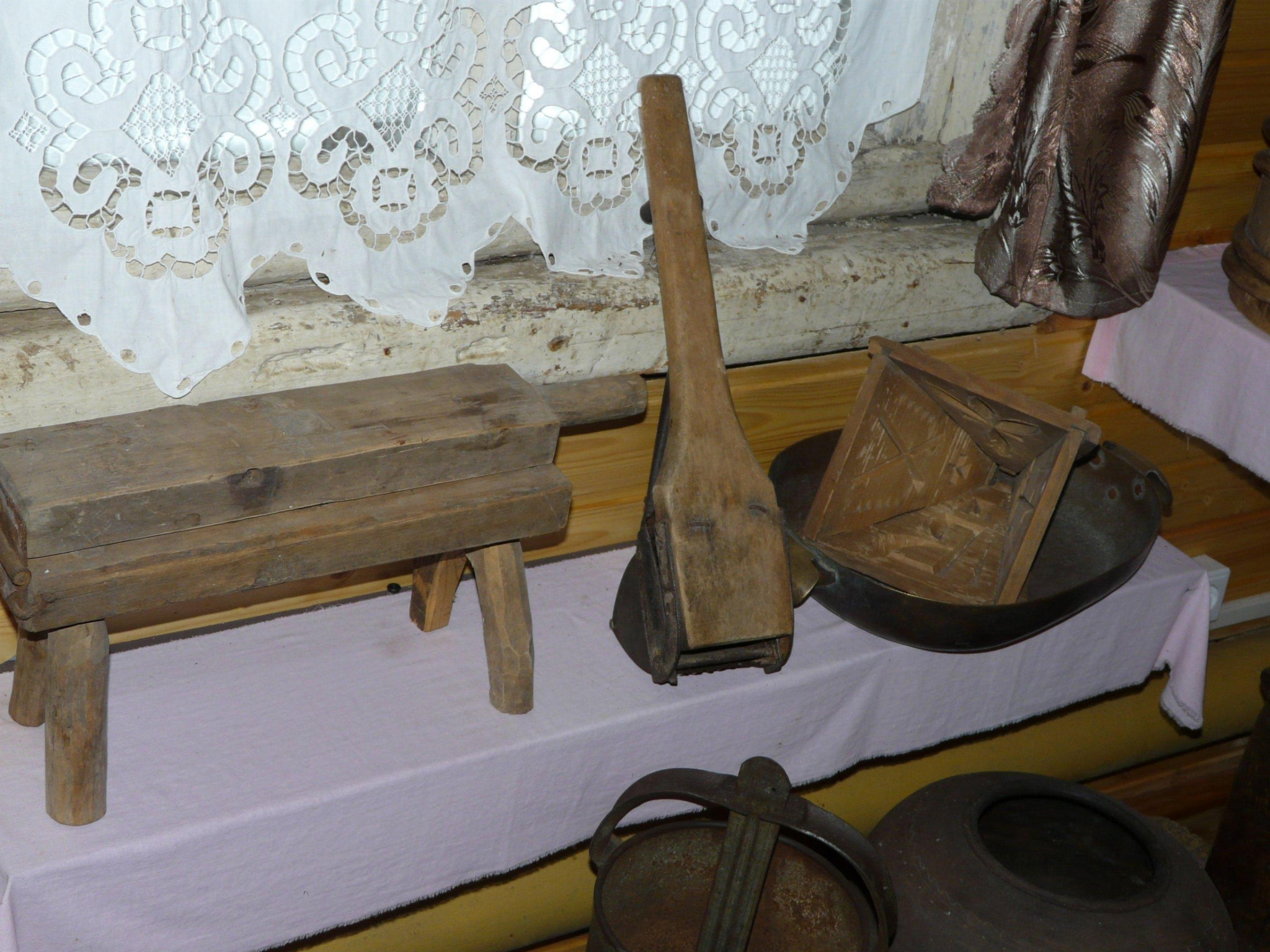 Главным местом в избе была, конечно, печь. Вокруг нее жил весь дом – тут и место для ночлега, и детский уголок, и кухонька, и даже иногда баня. Сельский быт был скромен и зачастую беден, все, что нужно было хозяйке в быту, порой делалось из подручных средств. Ситский край славился деревянными изделиями, так в Станиловской волости изготавливали деревянную посуду и ложки. А, например, мутовки для взбивания масла хозяйки делали сами из корешков или веток сосны. Были и свои гончары, а вот стекло было редким гостем на столах местных жителей. Что еще было важным атрибутом каждой избы можно увидеть на экспозиции.