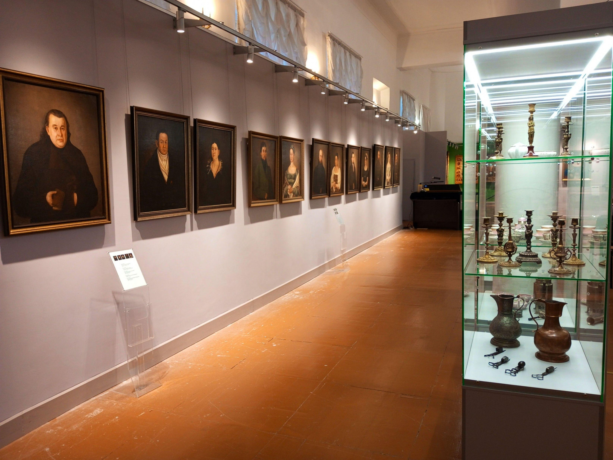 В отделе живописи музея два выставочных зала. Большой зал: экспозиция «Посадские – обыватели – горожане», комплекс портретов XVIII–XIX вв. Столетие – с середины одного века и до середины другого – было для провинции временем портрета. Спокойная жизнь городов, утверждение в них роли купечества, появление регулярных планов и образцовых проектов домов – все будто подводило к массовому распространению портретной живописи. Купцы больше не прятали свой жизненный уклад, а, напротив, любовались новыми домами и украшали их мебелью, зеркалами, своими изображениями. Холсты местных художников не относятся к «народному искусству», но они далеки и от образцов столичной живописи. Это особенное художественное явление, узнаваемое и яркое. Среди них – работы Ивана Тарханова, известного «классика» городского портрета.
