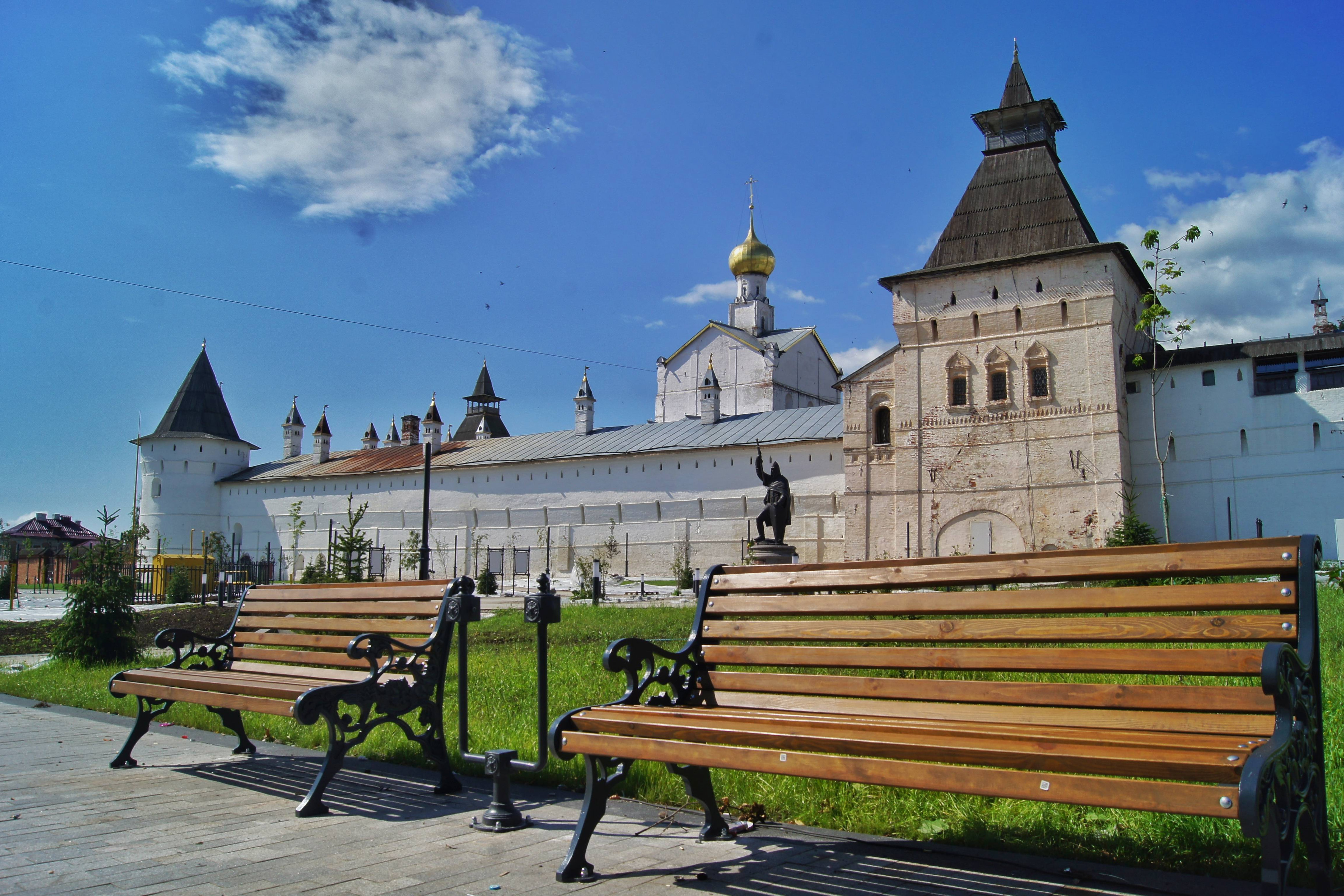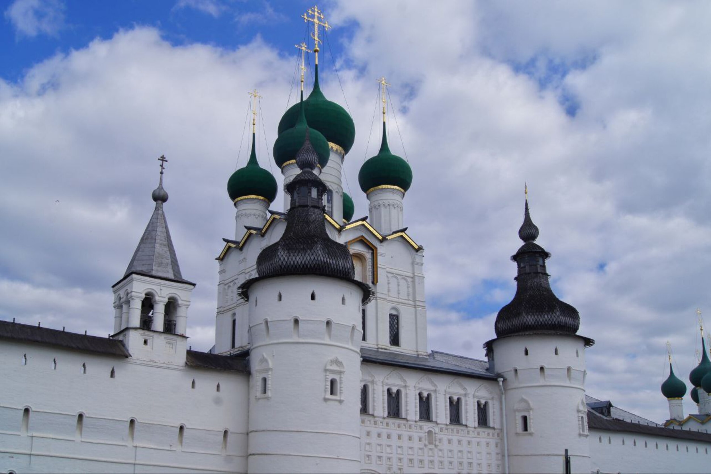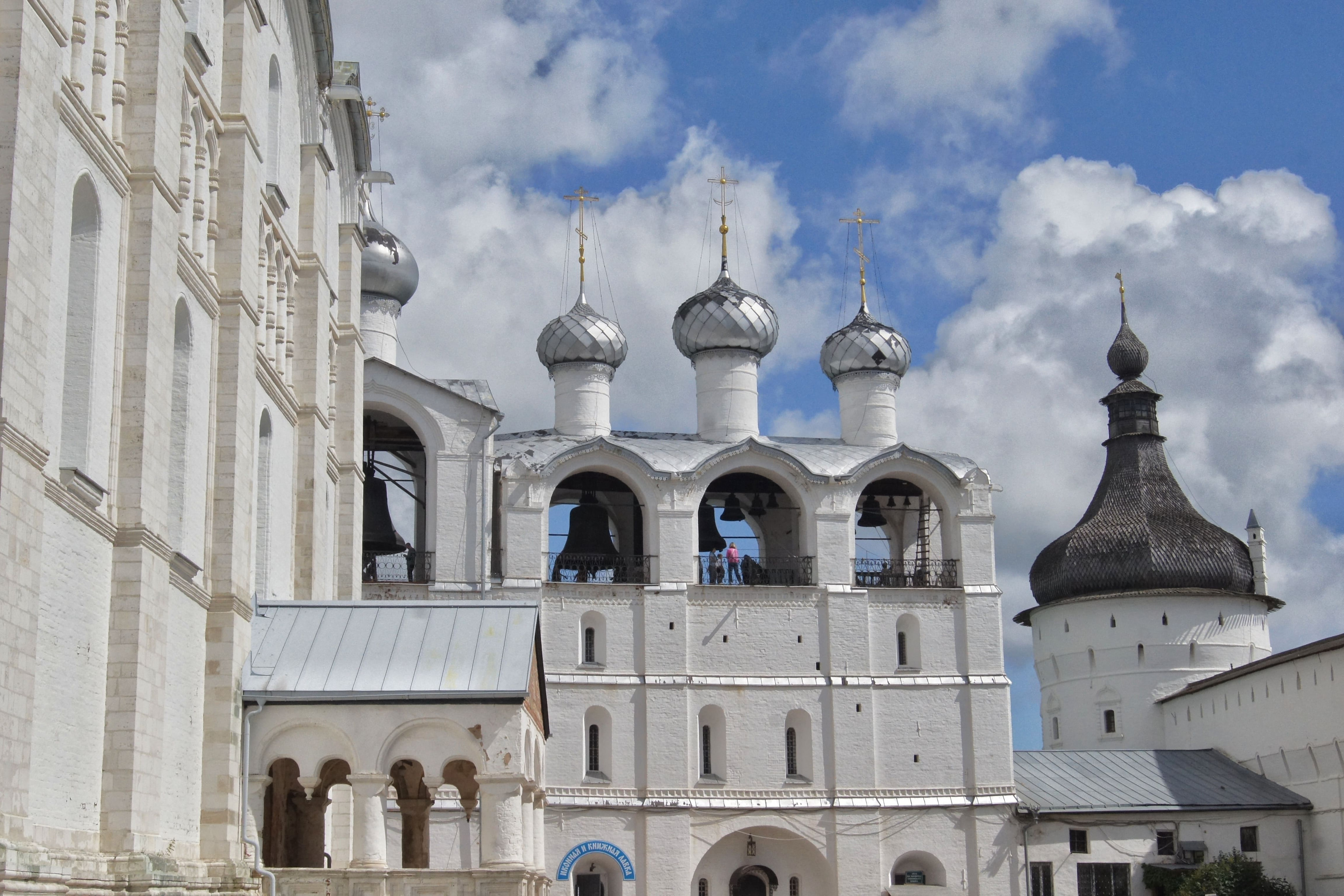 Ростовский кремль – это не то привычное оборонительное сооружение с башнями, узкими бойницами и крепостными стенами, которое можно увидеть в старинных русских городах. Так принято называть резиденцию митрополита местной епархии (митрополичий двор). Комплекс был возведен в XVII веке, когда Ростов уже не имел стратегического значения, поэтому его конструкции не приспособлены для защиты от врага: широкие входные ворота, окна с наличниками, отсутствие мест для удобного расположения защитников. Комплекс состоит из 11 башен, церквей, «палат» и ряда гражданских построек.
